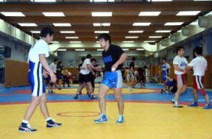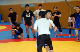 松本慎吾とともに全日本グレコローマン・チームを引っ張る男、60kg級の笹本睦(ALSOK綜合警備保障=写真右)が、アテネでの悪夢(誤審による敗戦)を引きずることなく、世界のメダル獲得へ向けて動き出した。