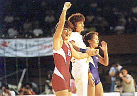 銅メダルを取ってガッツポーズ。