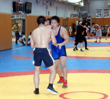 遠征を含めて6月の全日本選抜選手権までの課題は「クリンチに頼りすぎる面があるので、スタンドでポイントを取る技術をしっかり身につけたい」。この年齢の選手で、ここまでしっかりとした目的と意識を持ち、それをきちんとした言葉で言い表せる選手は、そう多くはいない。考えることができ、すらすらと表現できるシャープな頭脳は、将来がとても頼もしく感じられる。(写真左は、全日本合宿で菅とスパーリングする鶴巻)