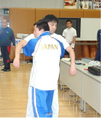 FILAのホームページでは、スイスの大会で行われたテストケースのビデオがアップロードされている(クリック)。また22日からスタートした男子グレコローマンの全日本合宿でも、富山英明強化委員長からクリンチのルールが変わる可能性のあることが選手に伝えられた(写真右は、新しいクリンチのやり方を示す富山委員長)。