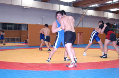 チームに喝(カツ)を入れ練習を引っ張る主将の松本慎吾。