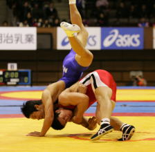 練習は副主将の笹本睦(グレコ60kg級)とともに率先してやるように心がけている(写真左)。「自分たちがやらなければ、後輩が続くわけない」。そして、斎川(前述)や74kg級で20歳にして全日本王者に輝いた鶴巻宰(国士大)に対しても、惜しげもなく技術を伝授している。主将としての自覚もさることながら、「彼らが力をつけてくれれば、自分が頑張る材料にもなりますから」。個人としても主将としても、最高に燃えられる年になりそうだ。