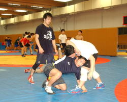 田南部選手はアテネ五輪のあと、12月の天皇杯全日本選手権を欠場。現役引退は否定していたが、いろんなチームで指導しており、このまま指導者になることも考えられた。この日、「指導することで自分の欠点が見えてくる。自分のレスリングの完成度を高めるための期間」とその目的を話し、このまま指導する側にまわることは否定した。