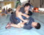 練習では、関節技や絞め技などの総合の技術を次々と披露。不利な体勢と見えながら、次の瞬間には関節やけい動脈ががっちりと決め、タップ(ギブアップ)に追い込む総合の技に部員たちは目を丸くし、実地体験に挑んだ。