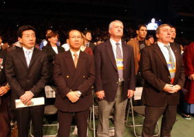 大みそかに埼玉・さいたまスーパーアリーナで行われた「PRIDE男祭り」に、国際レスリング連盟(FILA)のラファエル・マルティニティー会長、マリオ・サレトニグ副会長(米国)、福田富昭副会長(日本協会会長)が観戦。リング上から、FILAとPRIDEを主催するDSEとの提携を明らかにした。