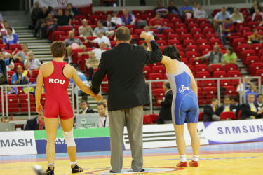【女子55kg級 2回戦】 吉田沙保里 ○[フォール1P0:32(F0:32=3-0)]● Ana Maria Paval(ルーマニア) 2回戦も圧勝。わずか32秒で勝負をつける。