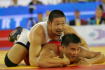 初戦の第1ピリオドから、田中は爆発した。トビンシントル・エンフトヤ(モンゴル)に片足タックルを決め1ポイント獲得すると、攻め込むスキを全く与えず、1分55秒経過。ところが残り5秒、ゾーン際でもつれると田中の足がわずかに場外へ。あ然とした顔で田中が時計を見つめたとき、終了のブザーが鳴った。