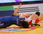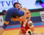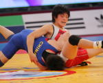 | 坂本真喜子の正面からの片足タックルが決まったかに見えたが…。 | 任雪層は前へ回転するように動き、坂本の体を一回転。このあと、坂本はバックを奪って1点を取り返したが、この2失点によって勝負を決められてしまった。 | ||||