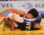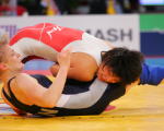 4年ぶりに世界一に返り咲いた51kg級の坂本日登美。5試合中3試合がフォール勝ちで、総獲得ポイントは31点というすばらしい攻撃能力を見せた。正確無比の正面タックルを紹介する。