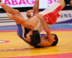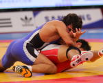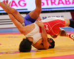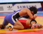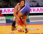 初戦でアテネ五輪チャンピオンと激戦を演じたフリースタイル60kg級の湯元健一。敗者復活1回戦のオダバシ(トルコ)戦では、豪快な3点タックルを決めた。勢いがつきすぎて1点を取られたのは今後へ向けて反省材料だが、持っている技をしっかりと出せた世界選手権だった。