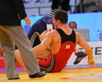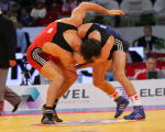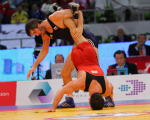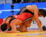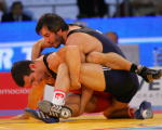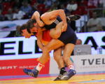 96年アトランタ五輪と04年アテネ五輪を含め、8度目の世界一に輝いたフリースタイル74kg級のブバイサ・サイキエフ(ロシア)。相手の動きに合わせた正確な技の指令が、次から次へと脳から出されている。
