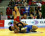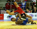 笹本に5点俵返しを決められたロシアのシェフツォフ。そのお返しとばかりに第2ピリオド、自らの体も宙に浮く豪快な俵返しでリベンジ。笹本は辛うじてフォールを免れ、勝負を第3ピリオドへつないだ。