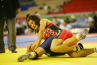 《1P》中盤、相手のタックルをがぶった浜口だが、そのまま場外へ押し出されて1失点。しかし、すぐに場外際まで攻めて押し倒して3点を獲得。3−1とした。