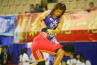 《2P》相手のバッティングで鼻血を出した浜口だが、ひるむことなく攻撃。場外際まで攻めたが、回られて投げの打ち合いになり、場外へ出てしまった。1分16秒で0−1。もう一度同じような形になって場外へ出され0−2へ。浜口は終了間際にタックルを決めてグラウンドでの加点を狙ったが、タイムの方が早かった。