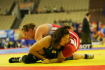 《1P》伊調が中盤、相手の左脚へタックルへいき、テークダウンのあとニアフォールを奪って3−0へ。そのままのスコアで終了。