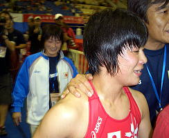 吉田幸代さん(沙保里選手の母=左写真)「くじ運が悪く、きのう(抽選の日)は、ちょっと不安そうな顔だったんです。あんな不安げな顔は久しぶりに見ました。自分も夜、寝られませんでした。でも、きょうは気持ちを切り替えて落ち着いてやっていましたね。口には出さないけど、プレッシャーはあると思います。でも、どんな時でも攻撃する気持ちが体で覚えているのだと思います。5歳のときに試合で負けて、優勝選手のメダルを欲しいって泣いていたことを思い出します。北京オリンピックまで無敗で進んでほしいと思います」
