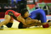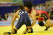 《2P》タックルへ行った吉田は、押し倒されるようなタックル返しを受けてしまった。体を入れ替えて1−3としたが、46秒にも1点を加え2−3と追い上げた。その後、なかなかポイントが取れなかったが、1分34秒、正面タックルからニアフォールへ追い込み、6−3と逆転。最後に地力を見せた。