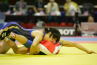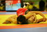 《1P》開始早々に正面タックル、それを持ち上げてマットへ落とした吉田は、そのままフォールの体勢へ。5秒以上押さえ込み、さらにニアフォールで攻めるなどしたが、必死にこらえる相手に惜しくも逃げられた。しかし7−0でテクニカルフォール。