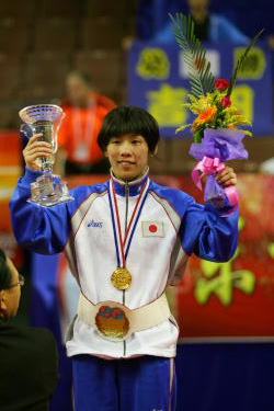 59kg級の正田絢子(ジャパンビバレッジ)も、初戦(2回戦)を勝ったあと、3回戦でアジア・カデット・チャンピオンのモンゴル選手を一蹴、準決勝で欧州55kg級2位のルドミラ・クリステア(モルドバ)を破った。決勝は昨年55kg級2位、地元の蘇麗慧(ス・リフイ=中国)と対戦し、第1ピリオドのラスト3秒で1−0として勝つと、第2ピリオドも2−0で勝ち、試合を決めた。