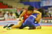 《2P》第1ピリオドと同じように正面タックルから持ち上げたが、1点どまり。中盤、相手のタックルをカウンターで返し、ニアフォールへ持っていって3−0へ。腕を取ってフォールの体勢へ追い込み、惜しくも逃げられたが、スコアは7−0になっていた。