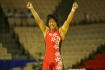 広州の天河体育館に君が代が3度続けて鳴り響いた−。世界選手権第6日は9月30日、中国・広州の天河体育館で女子3階級が行われ、51kg級の坂本日登美(自衛隊=右写真の左)、55kg級の吉田沙保里(ALSOK綜合警備保障=右写真の右)、59kg級の正田絢子(ジャパンビバレッジ=下写真)の3選手が優勝した。坂本は2年連続4度目、吉田は4大会連続4度目で、アテネ五輪を含めると5年連続、正田は2年連続3度目の世界一に、それぞれ輝いた。