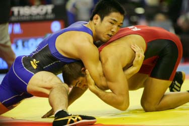 アテネ五輪を含めて6度目の世界大会出場の男子フリースタイル74kg級、小幡邦彦(ALSOK綜合警備保障)が初戦で敗退した(写真)。相手は昨年7月の世界ジュニア選手権優勝のミハイル・ゲネフ(ブルガリア)。今年3月にブルガリアで行われた「ダン・コロフ国際大会」の決勝で対戦し、負けた相手だった。