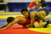 《2P》開始早々に片足タックルとローリングで攻めた松本は、体を入れ替えられて3−1。片足タックルへ行ったが、カウンターを受けて自分の背中からマットへ落ち3−4と逆転された。しかしラスト30秒、タックルで場外へ出し、終了間際にも片足タックルから反対の脚を払い、ラスト3秒に5−4とした。