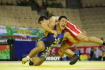 《1P》松本が開始早々に正面からタックル。相手の苦しまぎれのタックル返しを押さえて3点を獲得。その後、場外へ押し出されるなど1点を3度取られてしまったが、ビッグポイントの差でこのピリオドを取った。