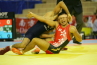 《1P》タックルへ行った高塚だが、25秒、がぶり返しを受けて2失点。しかし49秒、正面タックルで背中からマットへ落として3−2へ。終盤、タックルで場外へ出されてしまい3−3とされたが、ビッグポイントのよって高塚がこのピリオドを取った。