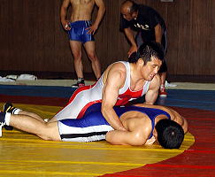 現在の男子グレコローマンの“顔”といえば、02年アジア大会で金メダルを取り、04年アテネ五輪7位、05年世界8位の84kg級の松本慎吾(一宮運輸)が真っ先に思い浮かぶのが普通だ。その次が、00年シドニー五輪に22歳の若さで出場して8位に入賞し、01年も世界7位に入賞した60kg級の笹本睦(ALSOK綜合警備保障)。公開練習における報道陣のインタビュー要請も、まずその2人に希望が集まる