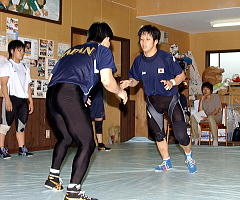 正田は「私はどちらかというとカウンタータイプ。でも、せっかく『日本は攻めてくる』というイメージを持ってくれるのですから、攻めてポイントを取れるようにしたいです」と、この夏は攻撃レスリングへの変貌を目標に取り組んだという。パワーを生かした闘いや、片足タックルの完全マスターがテーマだった(上写真=合宿で練習する正田)。