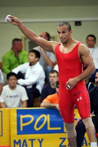 【ポーランド・ワルシャワ発、ウィリアム・メイ記者】世界選手を1ヶ月後に控え、グレコローマンの大きなテスト大会でもある「ピトラシンスキ国際大会」(8月25〜26日)に、一昨年のアテネ五輪の96kg級を制し、エジプトの全競技の中で56年ぶりの金メダルを獲得したカラム・ガベール(日本ではイブラヒム・カラムの名でプロ格闘技イベント「Dynamite!!」に参戦=右写真)が出場。08年北京五輪での連覇を目指し、いよいよ本格的なカムバックが予想された。