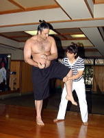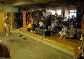 対談の最後は浴衣を脱いで技術指導 |