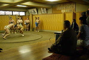 女子72kg級の浜口京子選手(ジャパンビバレッジ)が6月19日、ベースボール・マガジン社が8月中旬に刊行するレスリング技術書「レスリング入門」(監修=佐藤満・専大コーチ)の巻頭対談で、父のアニマル浜口さんとともに大相撲の大関琴欧州の所属する佐渡ヶ嶽部屋を訪問。関脇琴光喜ら関取同士の迫力ある朝げいこを見学したのち、ブルガリア時代にレスリングの強豪だった琴欧州から重量級レスリングの極意や気分転換の方法などを学んだ(右写真)。