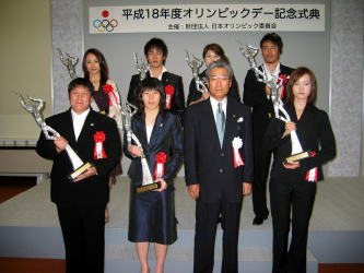 夕方から行われた表彰式ではは、最優秀選手賞のトリノ五輪フィギュアスケート金メダリスト、荒川静香選手らとともに賞を受賞。「アテネ・オリンピックでの金メダルを讃えていただいて平成16年度のJOCスポーツ賞優秀賞を受賞できたのに続き、今年度も世界選手権優勝を評価していただき、名誉ある賞をいただけことを誇りに感じています。心からうれしいとともに、2年続けて受賞できたことで来年以降の励みになります」と話した。