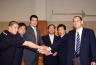 DSEからは、「いずれPRIDEのリングに上がる選手が育ってほしい」という希望からサンドバッグやグローブ、スウィットシャツが寄贈。高田統括本部長は「パンクラチオンが五輪種目になるための一歩がスタートした」とあいさつした。