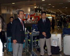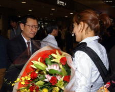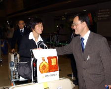 | 成田空港で一番の注目を集めた浜口京子&浜口監督。 | 船津友里と父・薫さん。父は元世界ジュニア王者だ。 | ハンドボール選手との婚約を公表した山本聖子。 | 日本協会・末柄勝総務委員長の出迎えを受ける正田絢子。 |