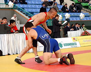 組み合わせの関係で予備戦からスタート。「優勝まで5試合か〜」と思ったという66kg級の高塚紀行(日大)は、優勝ではなかったが5試合を闘い、3勝2敗の成績で5位に入賞した。2試合目のダビッド・ポゴシャン(グルジア)はアテネ五輪5位の選手。強豪ということを知っており、「ここが最初のヤマ」と燃えたという。「いつもの試合よりは動きができた」そうだ。