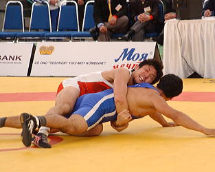 ただ、3試合目のラムザン・サリトフ(ロシア)戦や3位決定戦のムラド・ラマザノフ(マケドニア=ロシアからの移住者で昨年の欧州3位、左写真)戦は「自分の動きは悪くなかったが、相手の実力が一枚も二枚も上手だった」と脱帽。「今回3位までに入った4選手には、現在の自分の力ではどうやっても勝てない差があります」と、世界における自らの位置を正直に表わした。