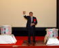 祝勝会では、高松雄行部長がテンションの高い声で「私は胴上げをされるのが趣味」とあいさつ。続いて小嶋勝衛・大学総長が「私はテンションを下げてあいさつします」と会場を笑わせた。続いてOBでもある日本協会の福田富昭会長が祝辞を述べたが、途中で馳浩・文部科学副大臣にバトンタッチ。専大監督でもある馳氏は「ことしのリーグ戦では憎き富山監督の鼻柱をへし折ってやりたい」と“宣戦布告”で祝福した。