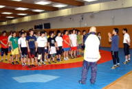 午後4時の合宿スタートのあいさつには、日本協会の福田富昭会長のほか、6日から9日まで予定されている女子のコーチ・クリニックにために来日した国際レスリング連盟(FILA)のマリオ・サレトニグ副会長(米国)らも出席。「世界のレスリングの発展につながる合宿となることを望みます」とあいさつした。