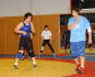 練習は日本の栄和人・女子ヘッドコーチ(中京女大職)、金浜良コーチ(ジャパンビバレッジ)、藤川健治コーチ(自衛隊)の指揮のもとで行われ、この日は初日ということで約1時間半。ウォーミングアップ、打ち込みのあと、2分×3ピリオドのスパーリングを約1時間続けたが、一部の国の選手は途中でダウンし、マットの隅に座り込んだまま戦闘不能状態へ。最後の綱昇りや懸垂(けんすい)をやろうともせず、初日から日本のハード練習に目を白黒させた。