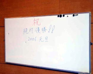 レスリング場のホワイトボードには2006年の決意が書き込まれていた。