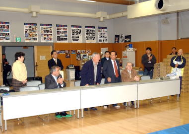 あいさつする(正面左から)カザリアン氏、サレトニグFILA副会長、