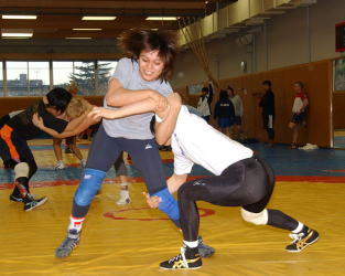 スパーリングが始まると、真っ先に吉田沙保里に挑んだ欧州チャンピオンの