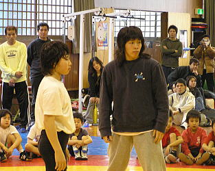 吉田選手の指導に、参加したコーチも真剣なまなざしを向けた。