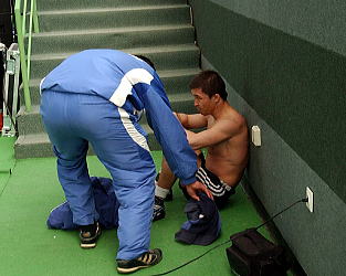 【55kg級 田岡秀規(自衛隊)】 準決勝 ●[1−2(0-1,6-2,0-2)] Dilshod Mansurov(ウズベキスタン) 試合直後のマンスロフは壁にもたれて立ち上がれない。 これだけバテていても、最後の勝負どころで力を出した。これぞ世界王者の強さ!