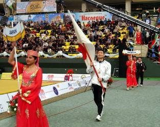 日本チームは和久井始監督が入場行進。