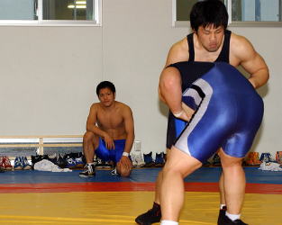 練習を見つめる平井進吾コーチ。昨年の優勝時は真っ先に胴上げを受けた。