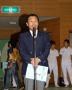 寺内正次郎・大会副委員長(高槻連盟代表)のあいさつ。